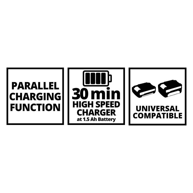 • Temps de charge pour batterie 3,0 Ah 60 min