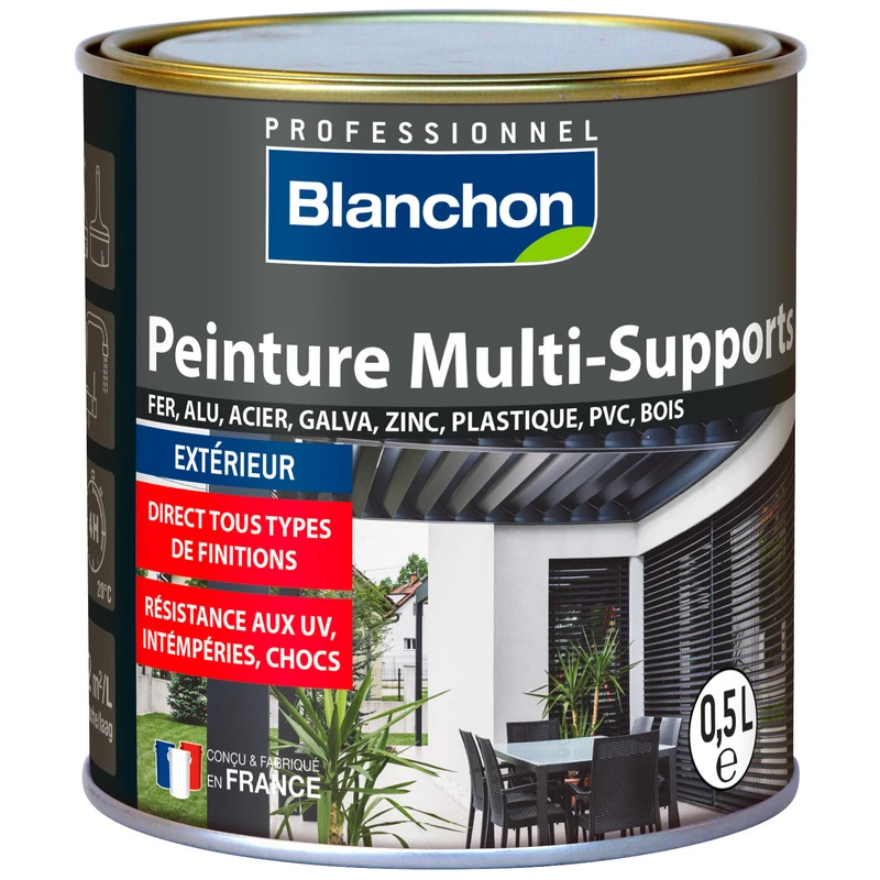 Peinture Extérieure Multi-supports Satinée Blanchon 0,5L Noir RAL9005