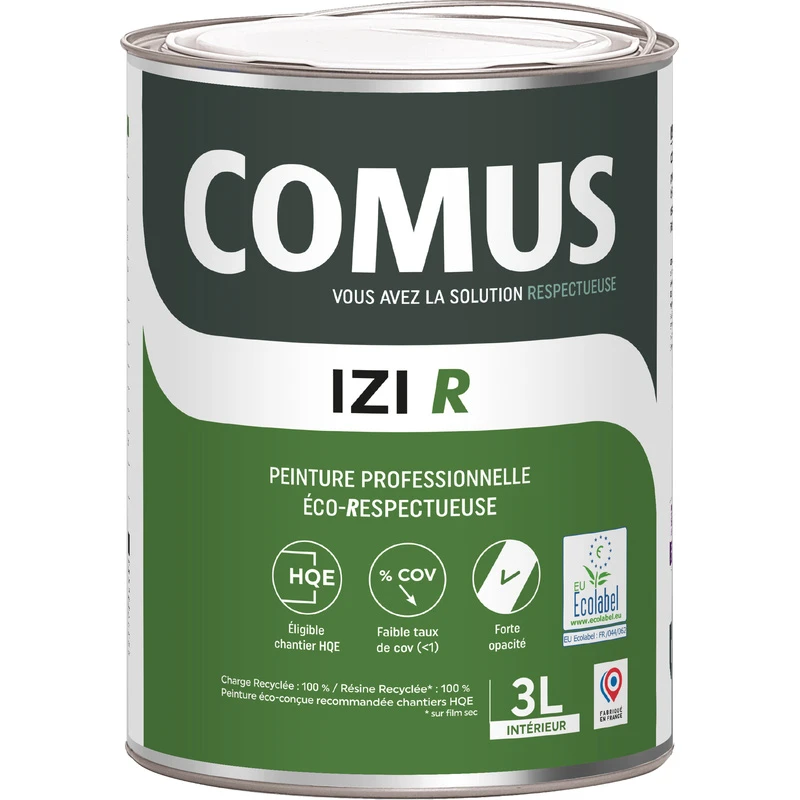 • Matières recyclées à 50%. Murs, plafonds et boiseries. Forte opacité. Apte aux chantiers HQE