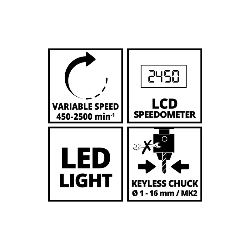 • Vitesse réglable 450-2500 tr/min
