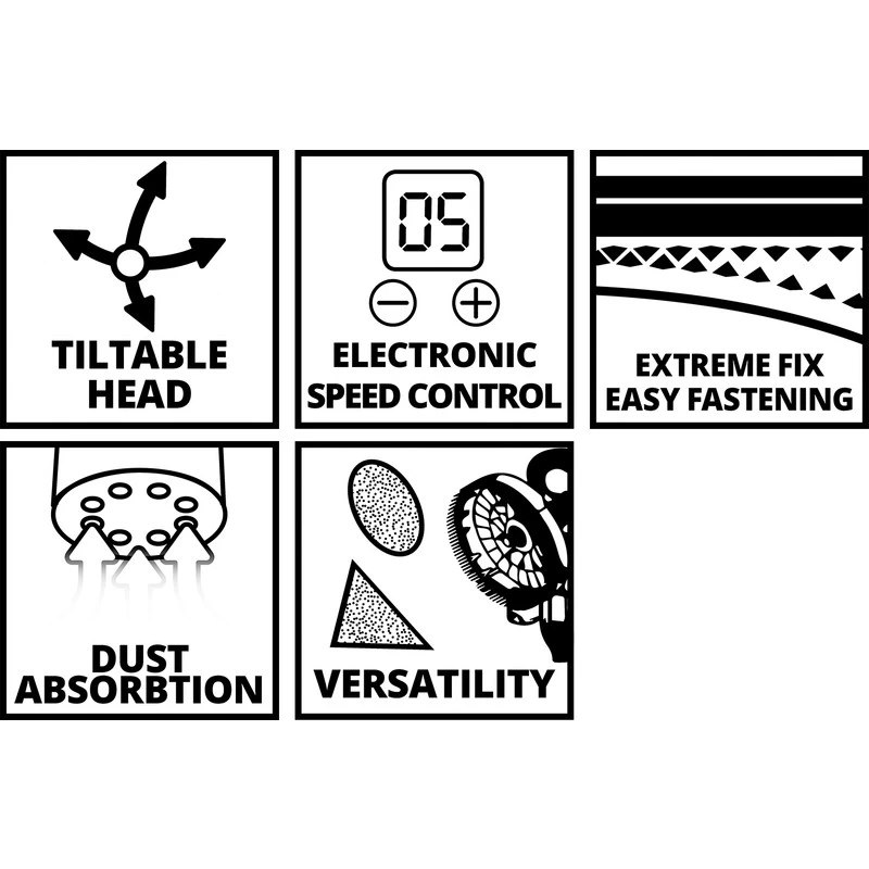 • Livré en coffret E-Box avec 6 feuilles abrasives (3 rondes, 3 triangulaires et 2 tissus abrasifs (1 rond/1 triangulaire)