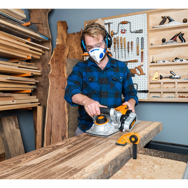 • Livré avec une clé, un adaptateur pour l’extracteur de poussière, un guide parallèle et 3 fers de 180 mm