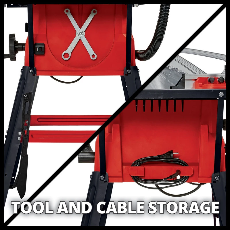 • Livré avec raccord aspirateur, dispositif de réglage 2-en-1 (hauteur et inclinaison), table et lame de scie 24dts