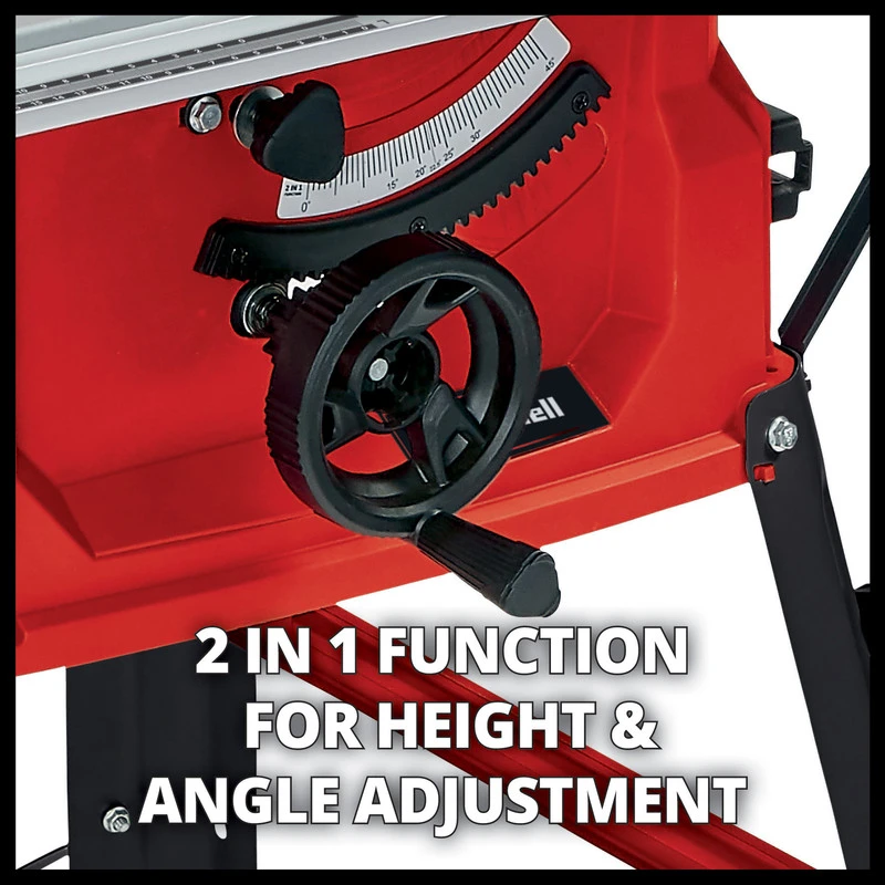 • La lame de scie possède un dispositif de réglage 2-en-1 (réglage de la hauteur et de l’inclinaison à l’aide d’une poignée).