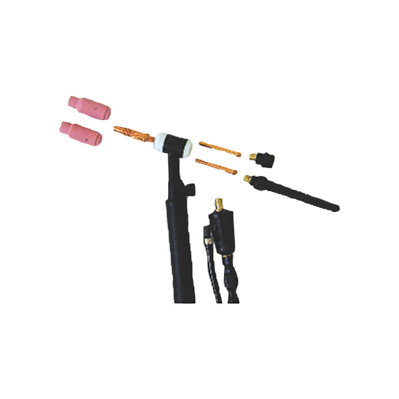 • Livré avec 2 buses (N5 et N7), 2 supports collet (Ø1,6 + Ø2/2,4), 2 pinces étau (Ø1,6 + Ø2,4), 2 coiffes (1 courte + 1 longue) et 2 électrodes tungstène WR2 AC/DC (Ø1,6 + Ø2,4)